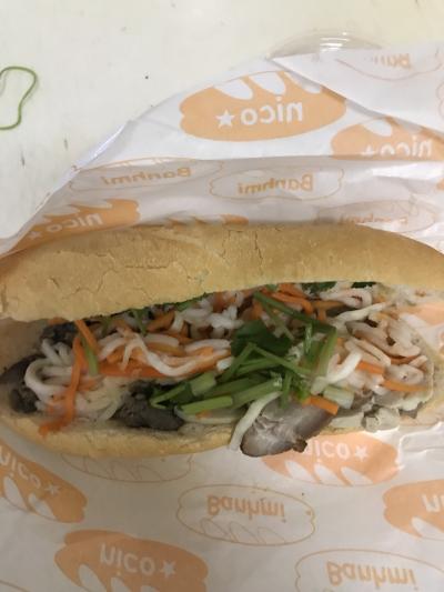 レバーペーストがサイコーに美味しい。今まででナンバー1です。ベトナムハムも焼豚のように柔らかいです。牛焼肉もナマスとピッタリな味付け。パンが具材と良く合っているので、満足感ありの重さナシ!時々ピリッと青唐辛子が顔を出して、どこを食べてもおいしかったです。- 旅行時期