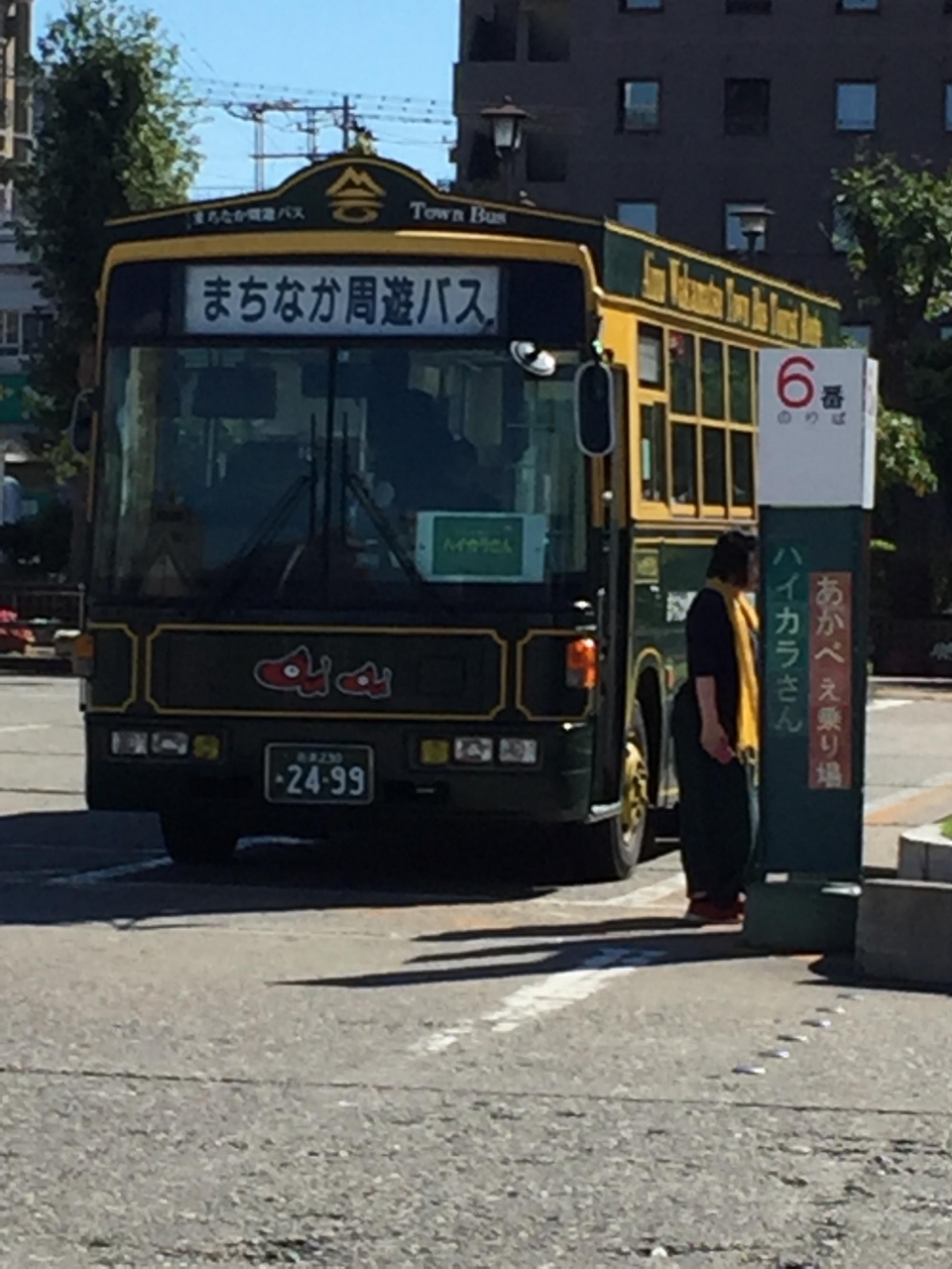 1回210円、一日周遊券が600円なので3回乗ったら元が取れちゃいます。観光地をぐるっと回っていて30分に1本運行。反対まわりのハイカラさんが15分ズレて運行。地元の方にも生活の足として使われています。時刻表がネット検索で出てきたPDFとパンフレットとで違っていて、どちらが正しいのか?でした。