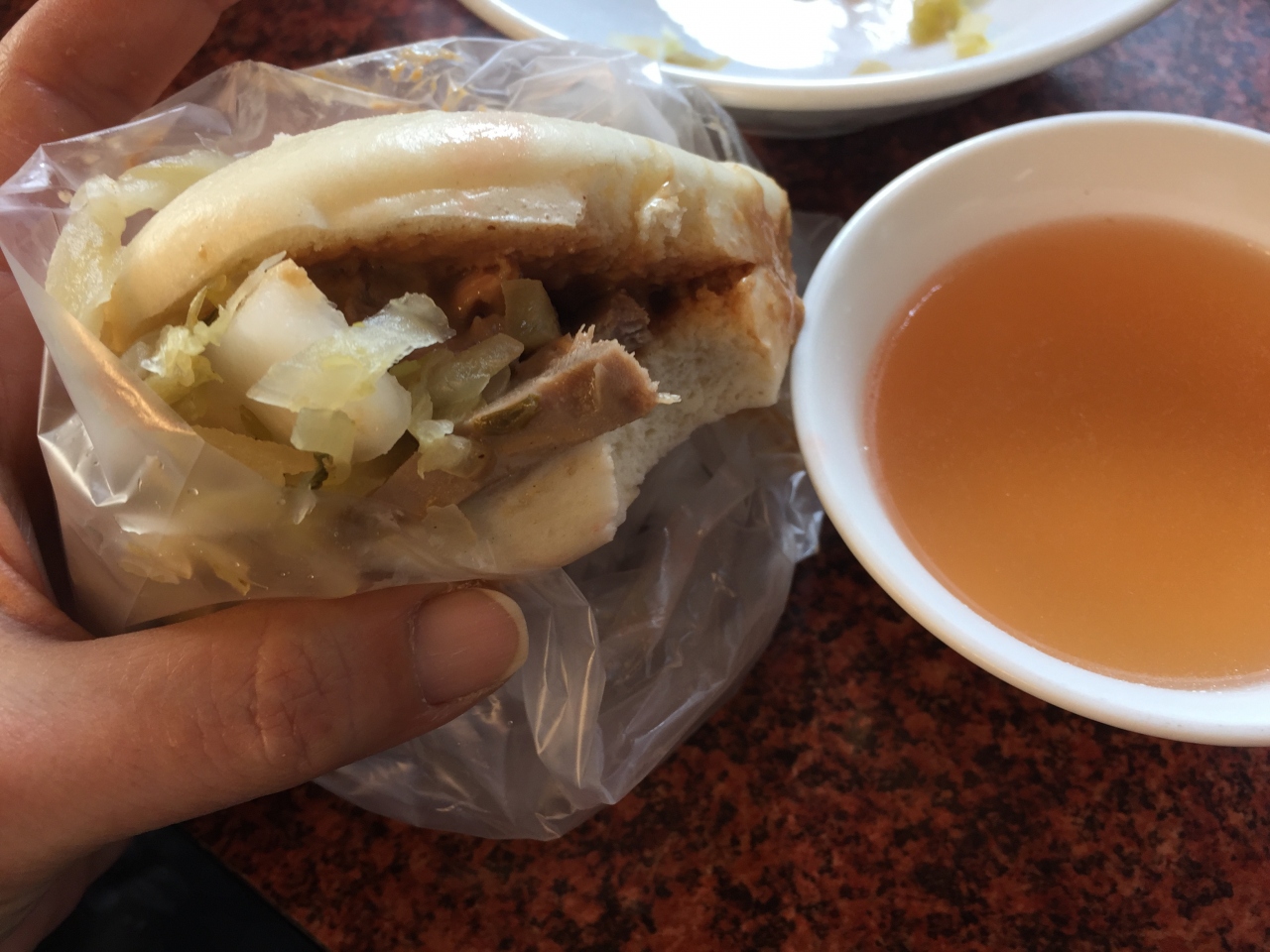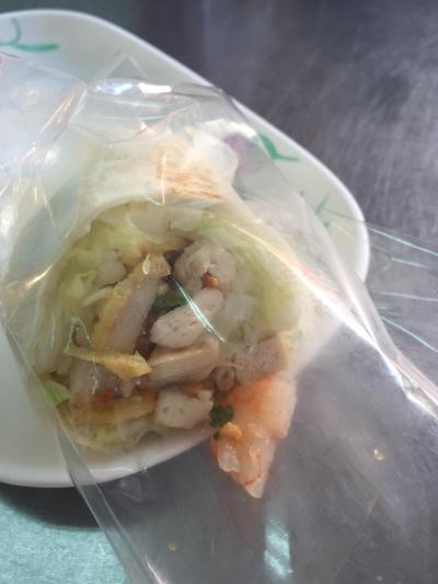 蝦巻とサツマイモフライを食べました。揚物なのに本当にサクサクほくほく。油っぽさは全くありませんでした。日本語が上手な小姐がいて「日本人はパクチー苦手でしょ?どうする?」と聞いてくれました。大好きなんで載せてもらったけど、苦手な方には有難いんじゃないかな。