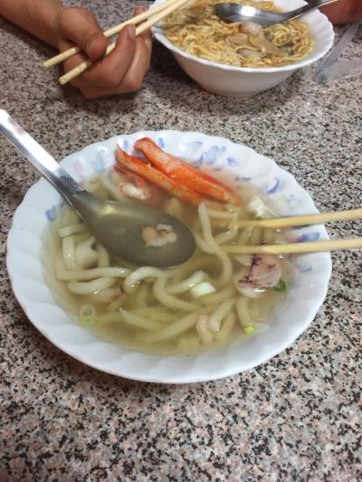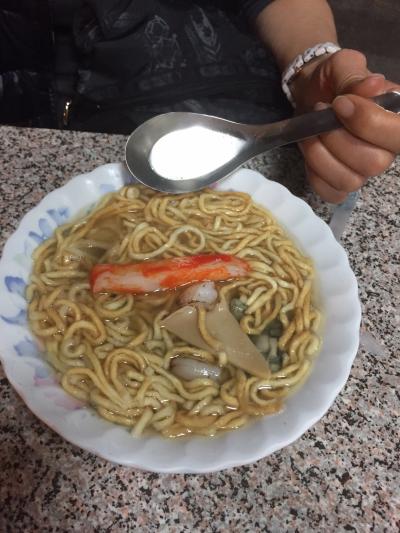 この店に行きたくて近くにホテルをとりました。夜10時からの開店なので若い方が多いです。夜食にピッタリの軽い量で、アワビ・イカ・エビなどが入っていて出汁の効いた透明なスープで食べます。意麺・粥・烏龍麺などが選べます。夕ご飯はこの一品のための余裕をとっておいて。