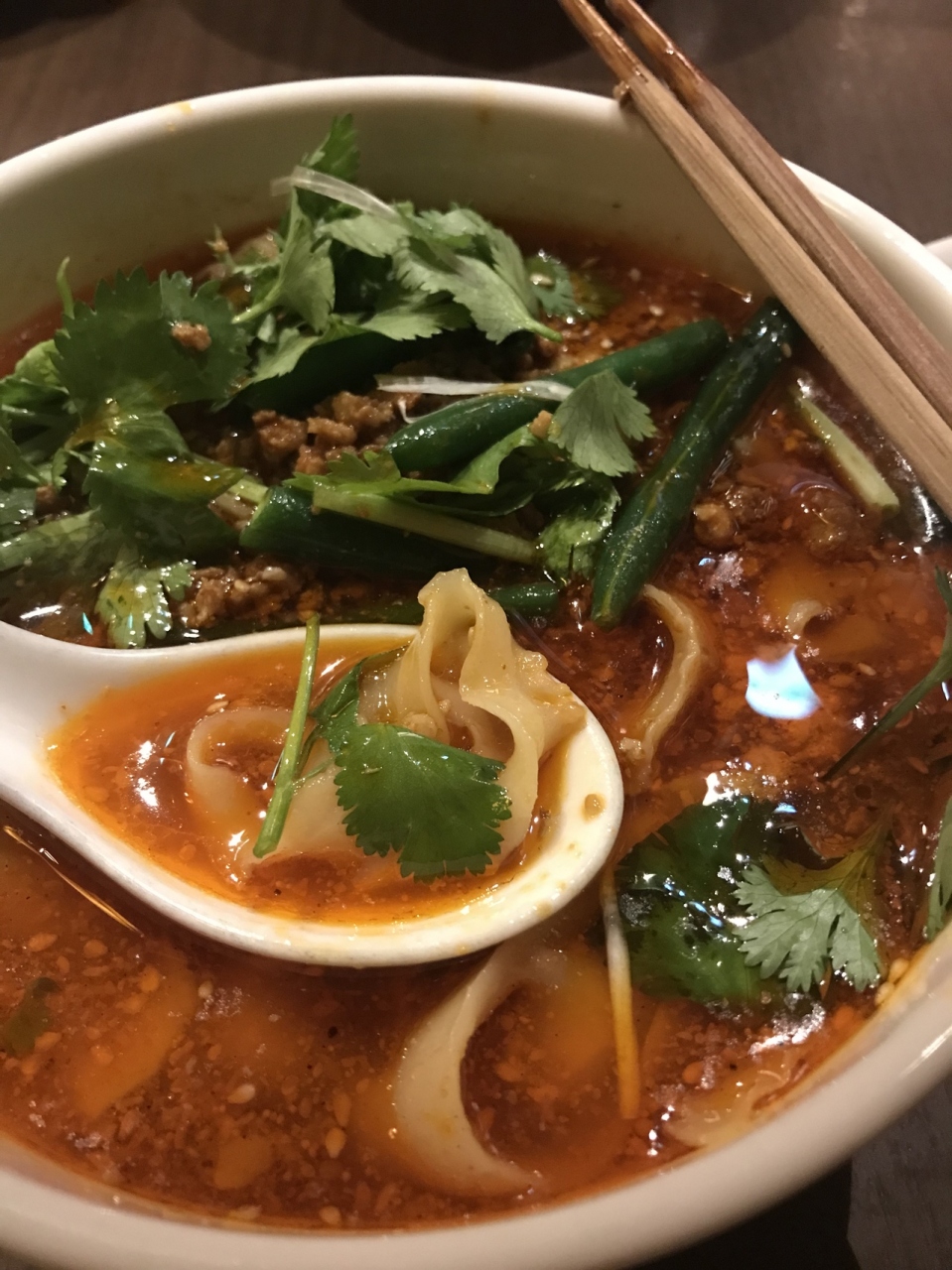 コロナ前よりは行列が短くなりました。寒いと食べたくなる麻辣刀削麺!大中小から選べます。小を頼んでライスを付けてる方も。麺がモチモチ。端の薄いところはチュルチュルです。追いパクチーは100円。食べ終わる頃には鼻水注意になりますが、身体が温まるのでやめられません。
