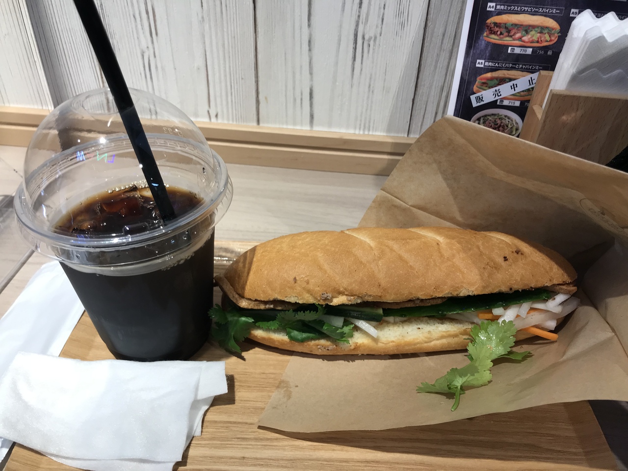 イートインスペースは壁沿いのカウンターで6席。サッと入ってサッと食べてサッと出る感じ。バインミーの種類が豊富。パンは軽めで、具も丁度良い量。ナマスが追加できると良いのにと思いました。お値段も妥当だと思います。美味しかったです。