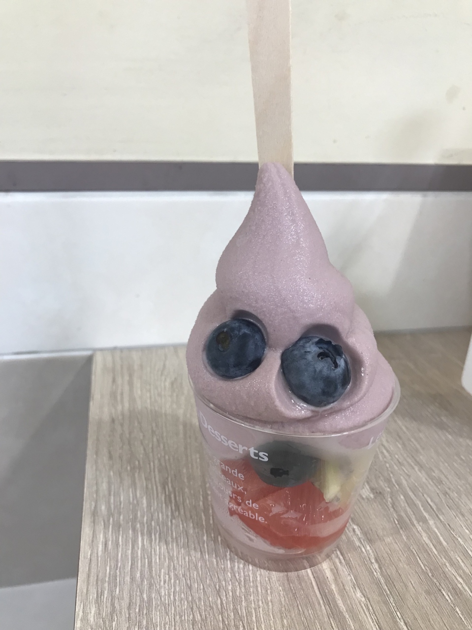 藤崎デパートの地下にあるジューススタンド。食券を買って注文します。カットフルーツにソフトクリームが載ったサンデーが¥350。ソフトクリームも4種類から選べて、大きなブルーベリーが2つも載せてくれました!ジュースもその場でジューサーで作ってくれます。次から次へとマダムたちが召し上がっていました。