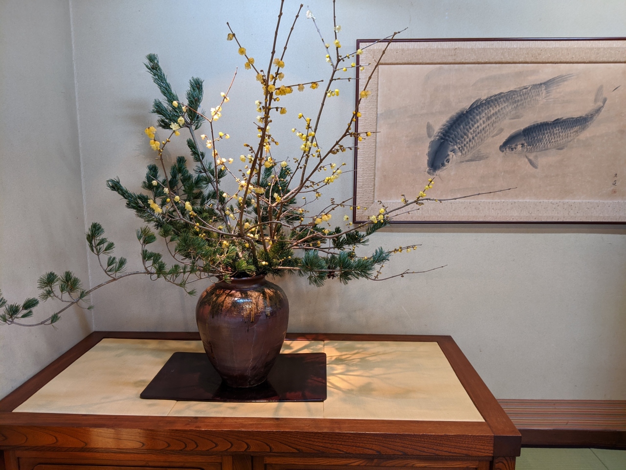 館内にはいたるところにお花が生けられていて、綺麗に飾られています。