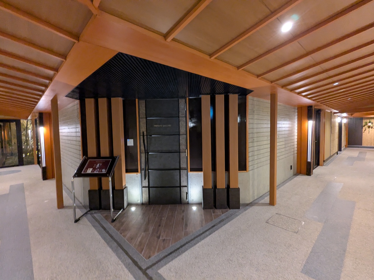 玄関を入ると巨大なガラス張りの窓から美しい日本庭園をのぞむ豪華なロビー。