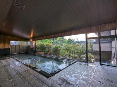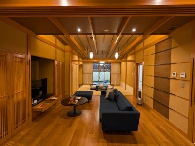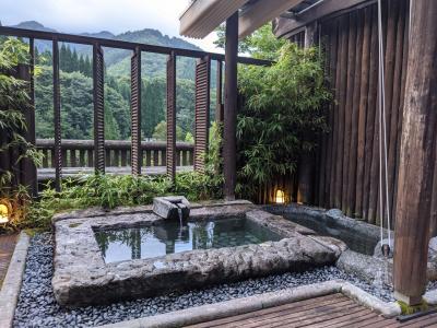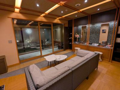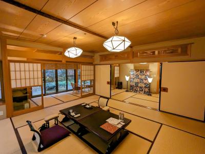 皆生温泉の町中にあって、館内はとても静か。お部屋も広々100㎡。なにより贅沢なのが客室風呂から絶えず出続ける源泉。貸切風呂も超贅沢仕様です。