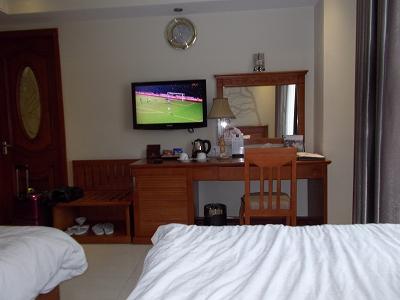 楽天トラベルにて予約の出来る一番安いホテル。 スーぺリアル・ツイン(ダブルベッド一つ) 一部屋980元でカードでの支払いOKです。 テレビ・エアコン・冷蔵庫・スリッパ・櫛・歯ブラシセット・ドライヤー・インターネットのジャックあり。パンと卵とココアの朝食付き 日本語は通じないが、英語が少し通じる。- 旅行時期