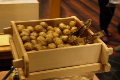 温泉で作る茹で卵や蒸かしジャガイモなど宿泊客を楽しませる工夫が見られました。