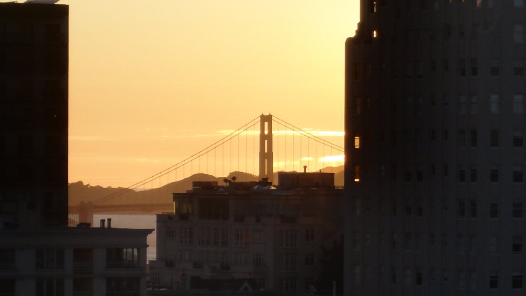 予約後にメールで見晴らしのいい部屋をリクエストしたところ、ゴールデンゲート側の高層階にしてくれていました。そもそもヒルトップなため、どこの部屋からもいい眺めなはずですが、やはりゴールデンゲート側が人気のようです。最上階のレストランからは、中心街のビル群やベイブリッジなどの夜景も楽しめます。