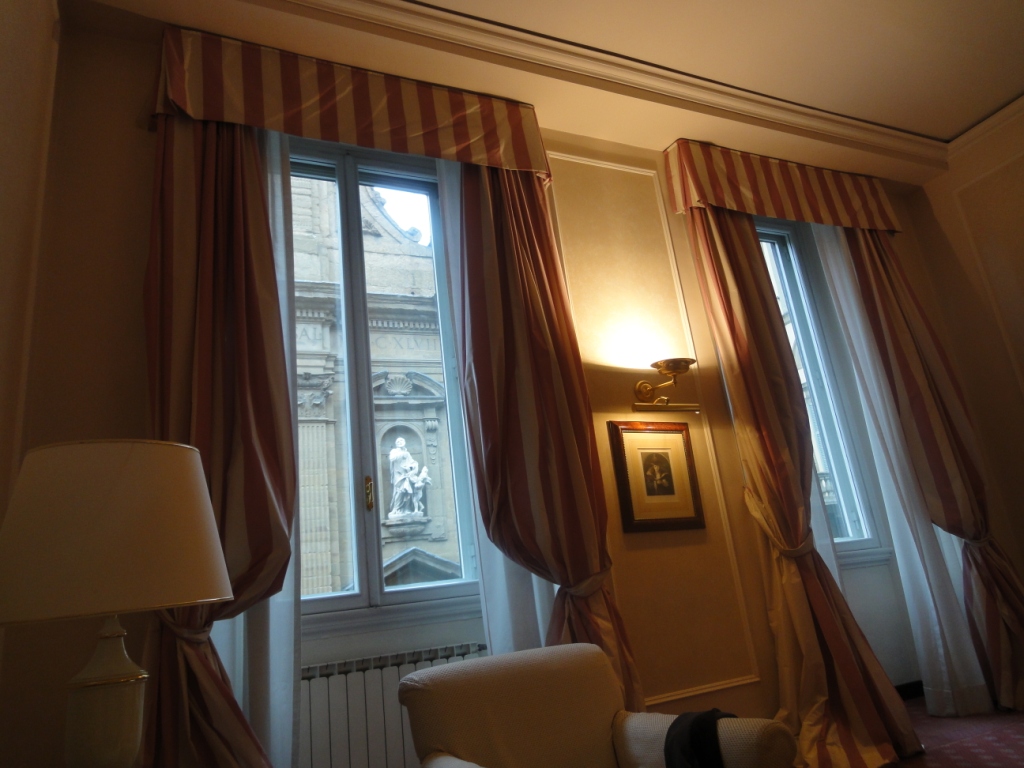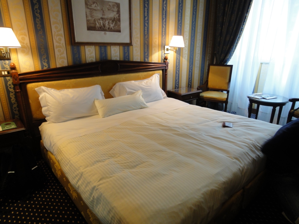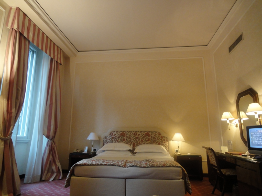 観光には便利なテルミニ駅から徒歩圏内。さすが5つ星のホテルは外観とフロントロビーが超豪華。中世の建造物らしいく格式の高さが伺えます。スーペリアでしたが、キングサイズベットで水回りがかなり綺麗でした。アメニティは全てETRO。但し、部屋は窓外の景色が見えず暗かったです。朝食はビュッフェでまあまあ。ホテルの裏に庶民的なトラットリアがあり、とても美味しかったです。地下鉄が目の前で、周りに教会もいくつかあってロケーションは良いです。