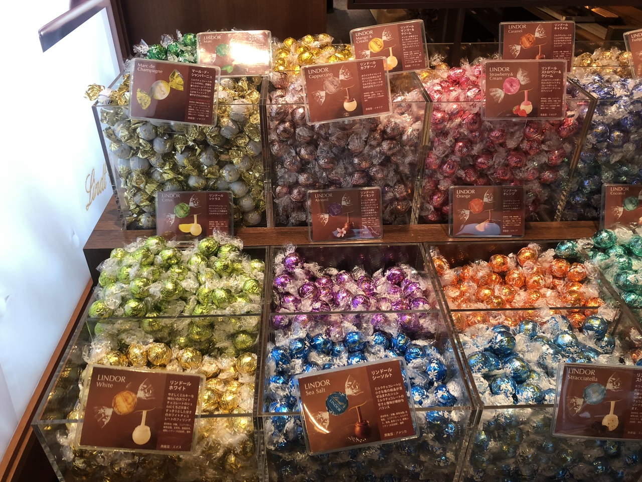お店に入ると、すぐに10種類以上のリンドールの棚があり、どれにしよう!!とわくわくさせられます。