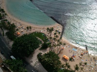 心地よい風が吹く中、ワイキキ方面を眺め、自分が宿泊しているホテルなんかを探していると、