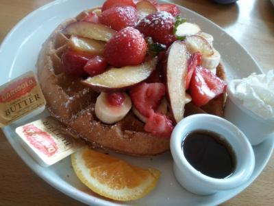 私は、ワッフルに、ストロベリー、アップル、バナナを追加で乗せてもらいました。