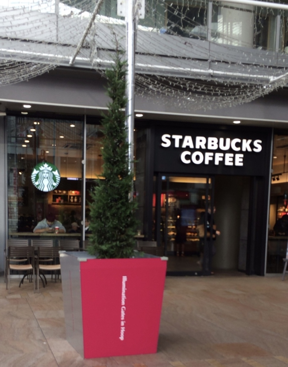冬は、スタバ前のhoopの広場にクリスマスツリーが飾られるようなので、多めに取られているオープン席の利用も良いかもしれません。- 旅行時期