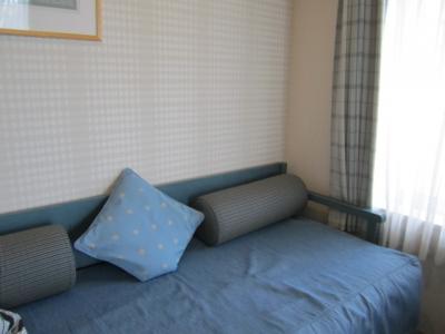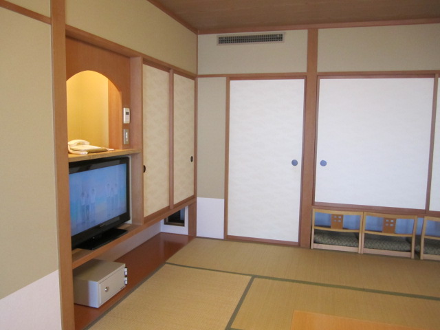6畳一間で普通椅子が置いてある板の間もなし。2人でも狭かったです。