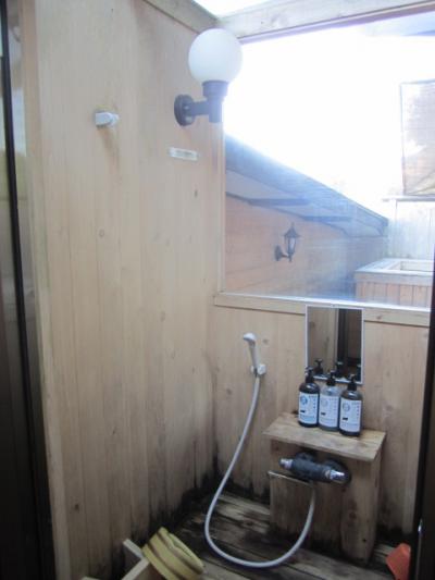 部屋露天は出入りはちょっと大変ですが、お風呂はヒノキでちょうどいい温度でした。