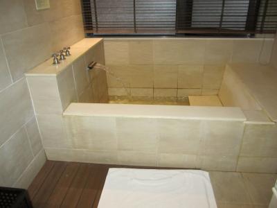 室内のバスタブは2人余裕で入れる広さで、しかも温泉です。