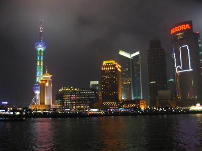 船に乗って、外灘の夜景を見る。道沿いは、ツアーのバスでいっぱいだった。船の一番端の席には、飲み物4本とお菓子が乗っていて、1テーブル60元出すと座れる。他の席は無料。約1時間の航海は、きれいでおすすめです。