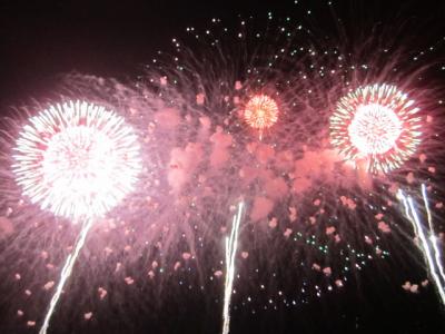 花火は目の前で上がりますので、迫力があります。うちのカメラでは良く撮れ...