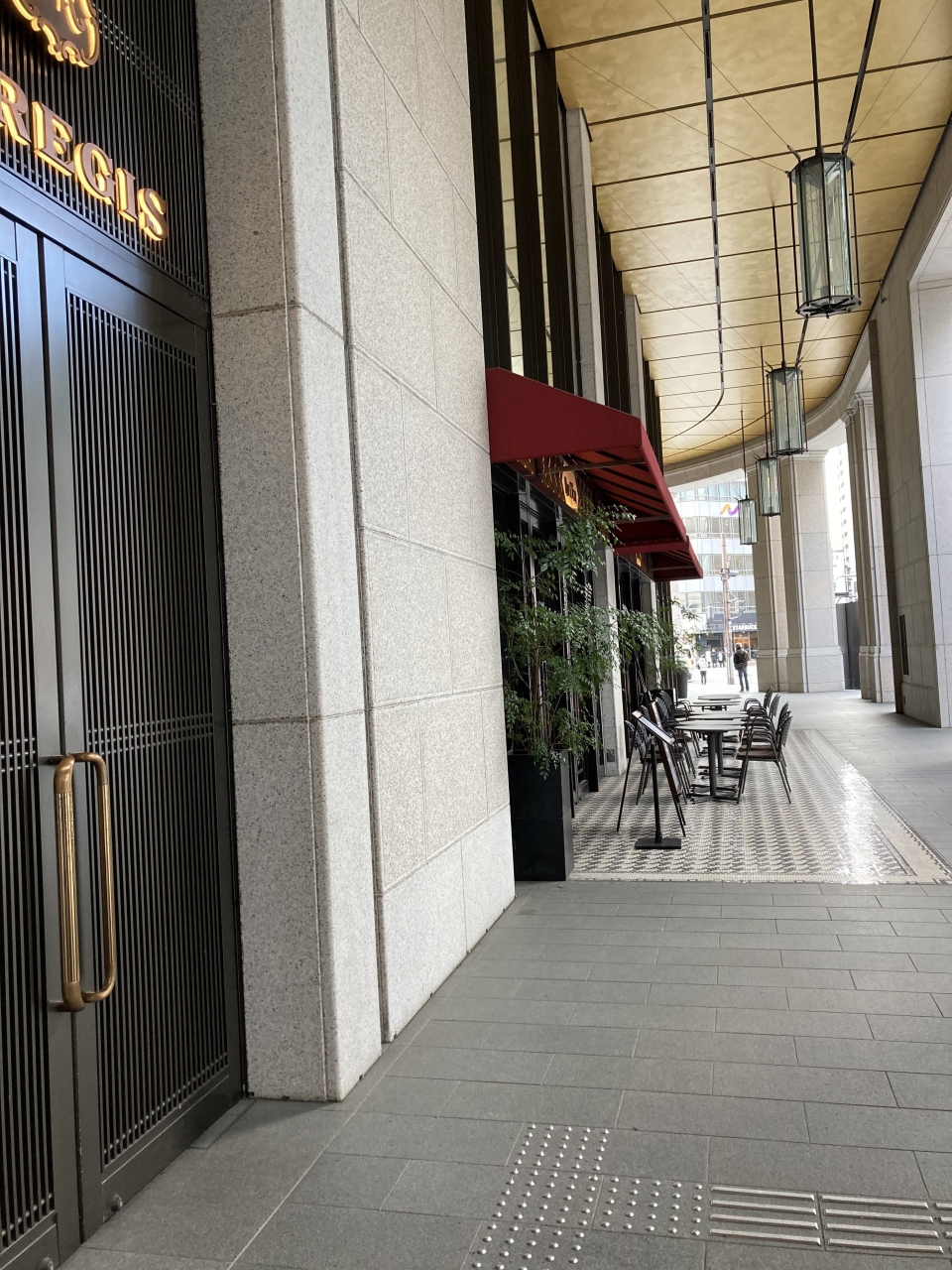 セントレジスホテル大阪は御堂筋エリアのほぼ中心部に立っています地下鉄で行くと地下鉄御堂筋線本町駅下車7番出入口で出ていくとすぐにセントレジスホテル大阪に到着しますただ私は初めてだったので高級ホテルなのですぐに素晴らしい玄関があると思っていたのでちょっと戸惑ってしまいました建物の中を少し行くとセントレジスホテルへのアプローチがあります。高級ホテルなのにこのアプローチちょっとがっかりです。