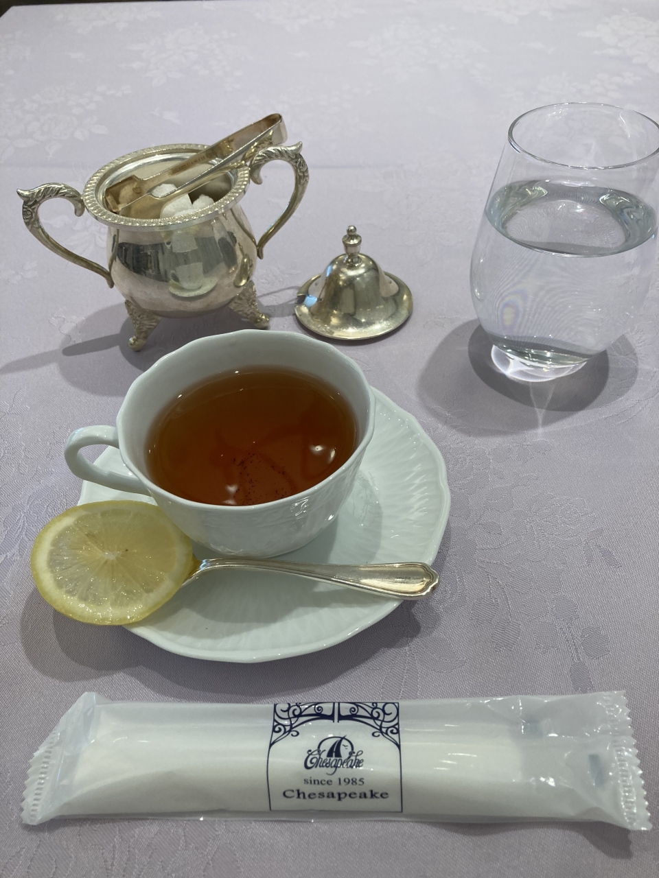 チェサピークの川西店は時々行きますが、西宮北口の阪急ガーデンズに入っているチェサピークもたまに寄せていただいています。今回初めて気がついたのですがルスードチェサピークと言うんですね。阪急百貨店の3階にあります。お店のふいんきはとても落ち着いていて茶色が基本色でピンクのテーブルクロスがとてもよく似合っています。今回はお茶休憩でお紅茶をいただきましたがダージリンティーおいしかったです。