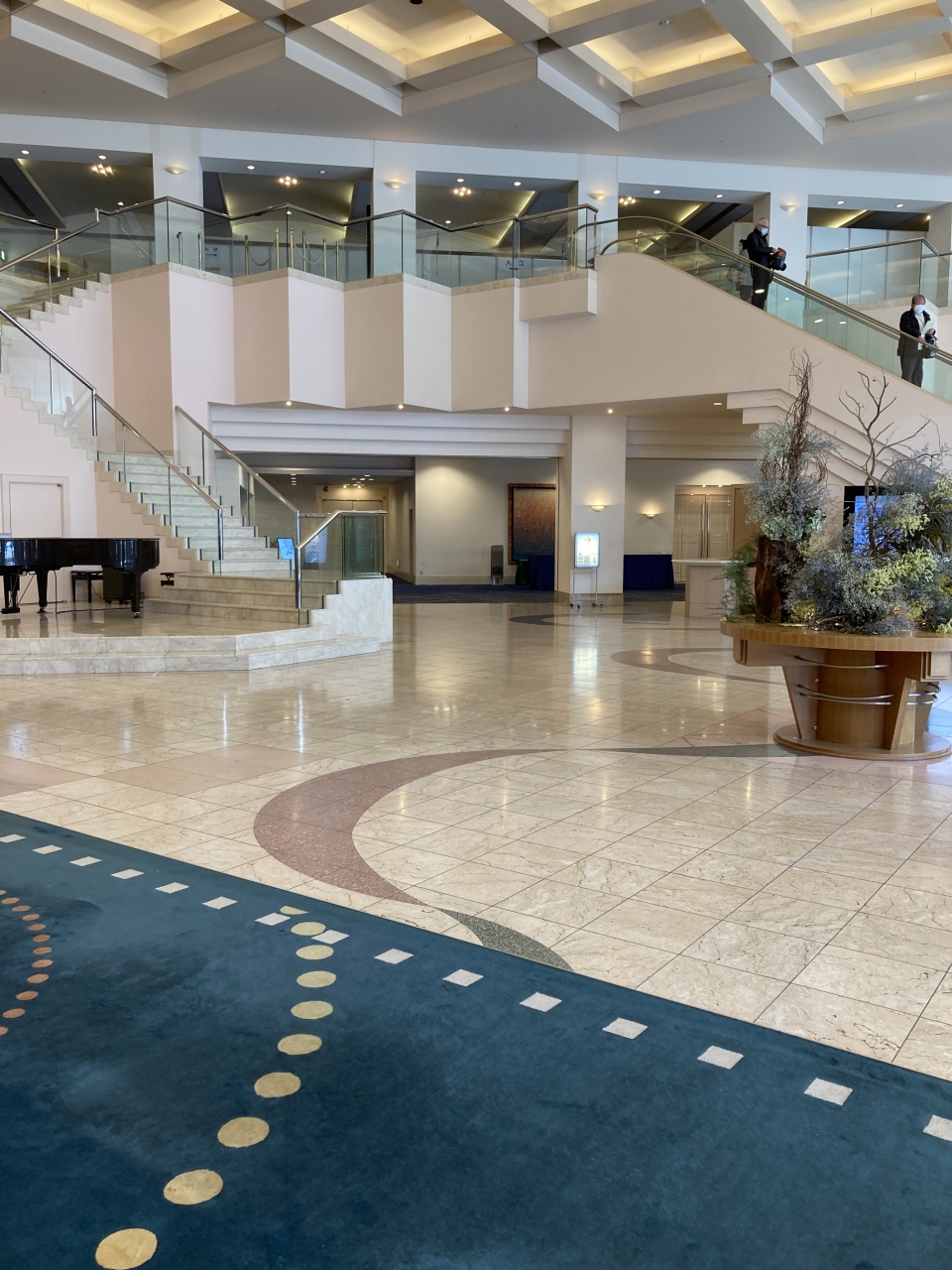 帝国ホテル東京は有楽町から歩いて5分と書いてありますが私はもう少し時間がかかるように思います。途中に宝塚劇場もあります。私たちのように関西から行く人間にとってはやっぱり便利な場所に建っています。チェックインチェックアウトの時に少し混み合っていた場合でもホテルのスタッフがさりげなく話しかけてくれてまずイライラする事はありません。この間合いが私は大好きです。ロビーのお花もプリザーブドフラワーが満開に行けてあります。