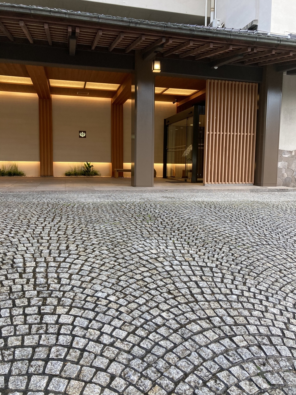 二条城のそばにあるこのホテルはもともと三井総領家の邸宅地跡を受け継いで建てられたものです。場所は市営地下鉄二条城前駅で降りて2番出口を出ると歩いて4 、5分で着きます。正面玄関は三井総領家の御門をそのまま残してあります。二条城の近くに立てた当時の三井家の勢いを感じますね。お庭は植音が造ったようで、それを宮城俊作が現在風に再生したようです。なかなかの見ごたえがあります。