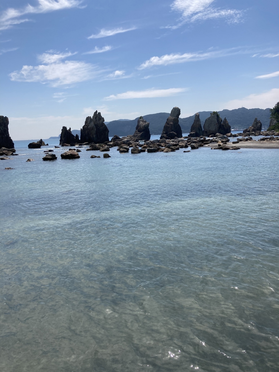 国道沿いにこの道の駅橋杭岩があります。正面は美しい海に点々と橋杭岩が並んでいます。最高のロケーションのところに売店と駐車場があります。もちろん駐車場は無料です。駐車場の前ましたが橋杭岩の海岸です砂場があって子供たちが遊べるようになっています。もちろん絶対に保護者は必要です。売店にはいろいろなお土産が並んでいて見てるだけでも楽しいです何点か買いましたがお値段は定価です後で行く白浜温泉と変わりませんでした。