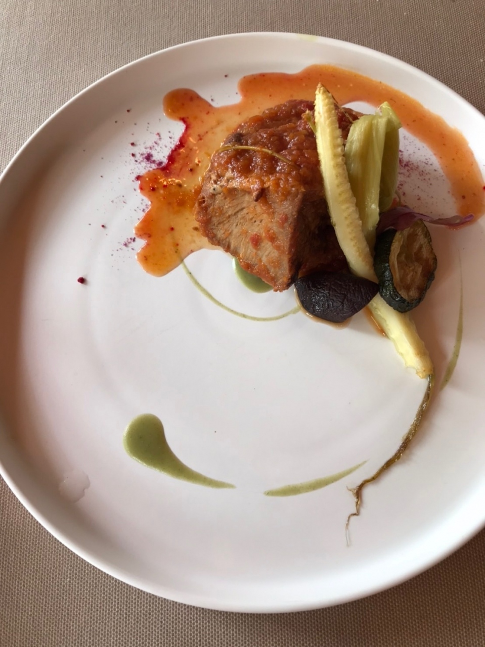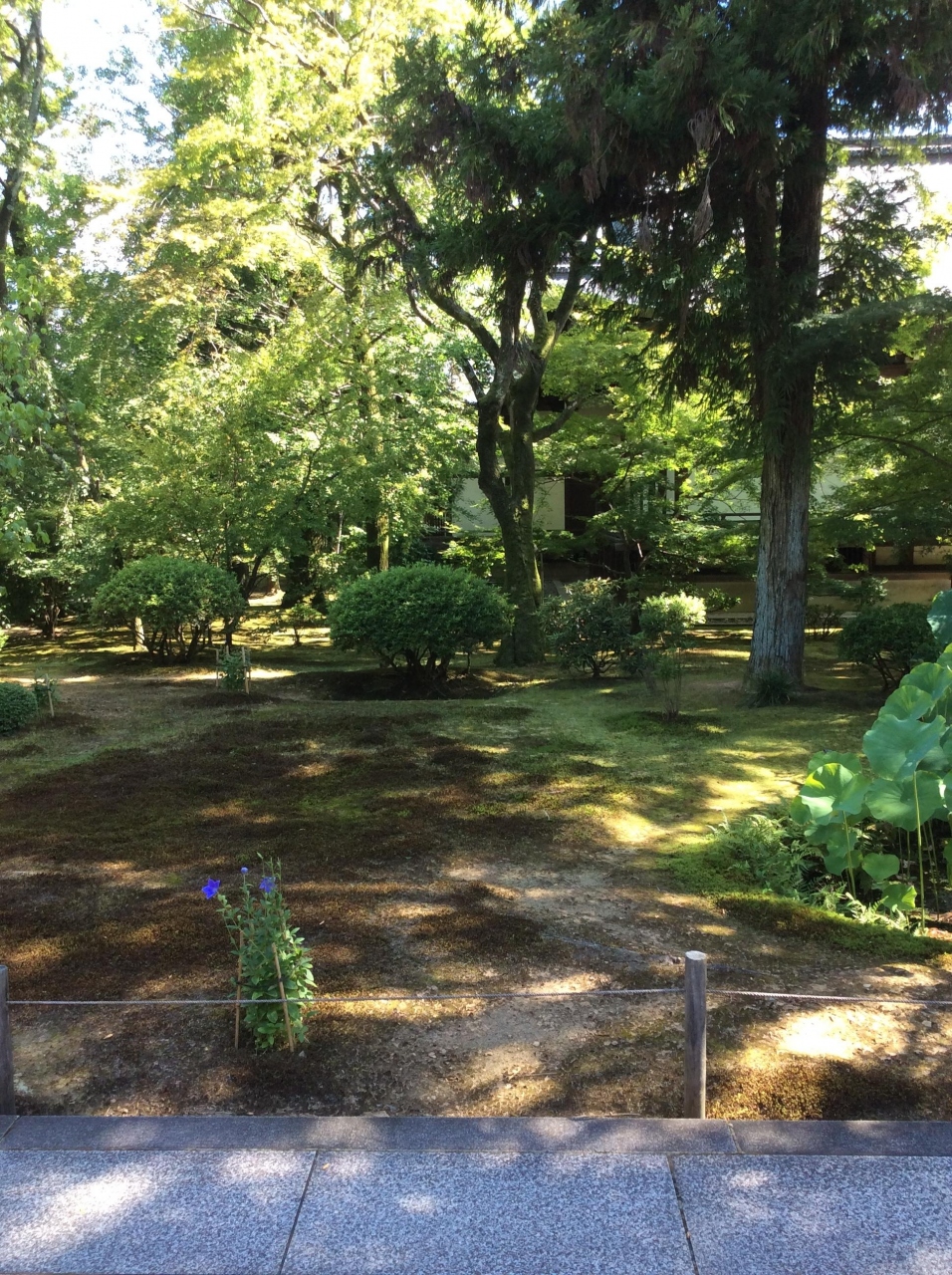 あの有名な巨匠竹内栖鳳の居宅跡です。これが判ったのは、お店の廊下を歩くと杉の寄木造戸が並んでいて床も木のモザイクを使用されていて、これだけで元は有名な人のお宅だったのかな?と思いました。入り口から見える素晴らしいお庭も思わず見入ってしまいました。満足です。