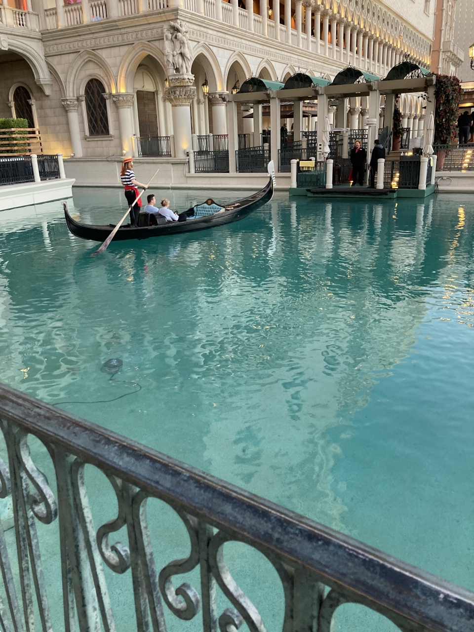 ラスベガスの町歩きというよりカジノ巡りで、デュースに乗ってベネチアンリゾートに行きました。ホテルの前は運河になっていて、ゴンドラが何隻か浮かんでいます。まるでベニスにいるようです。ベネチアンリゾートホテルの中は素晴らしい天井壁画がお出迎えです。