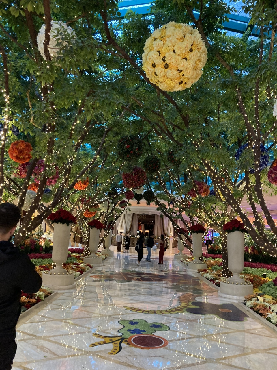 ラスベガス大通りに面しています。カジノ巡りでパラッツォに寄りました。大儲けをする予定です。ホテルの中はまるで夢の世界で素晴らしい。お花に囲まれてメリーゴーランドが回っています。まるでおとぎ話の世界のようです。とても見ごたえありのクリスマスを過ごせました。さすがラスベガスのホテルはゴージャスです。