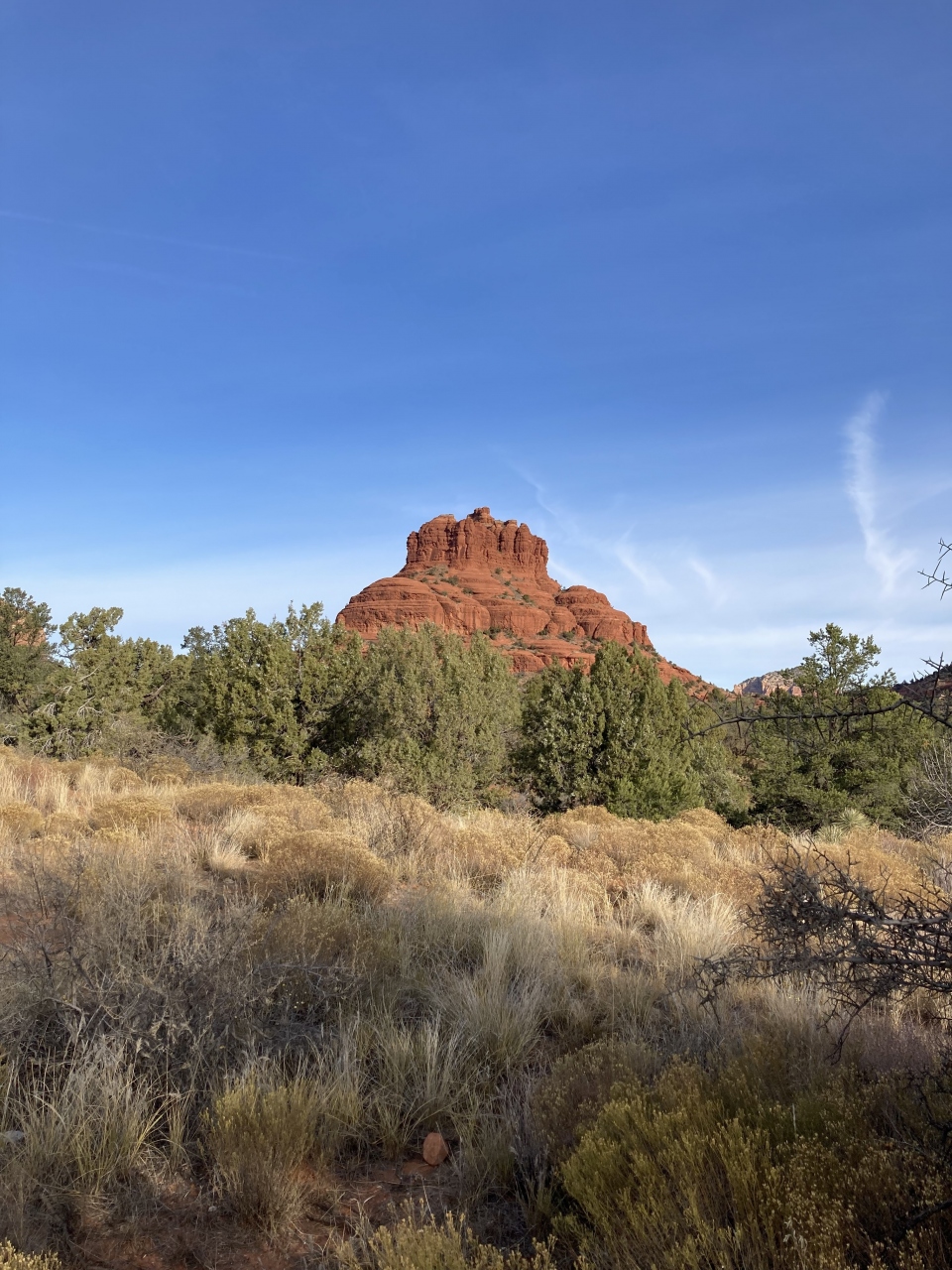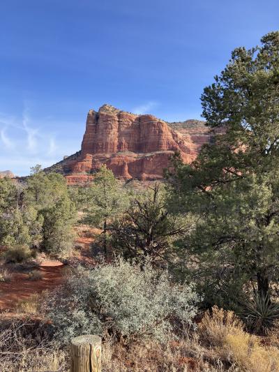 ツアーで観光してきました。わたし達のツアー以外には観光客は見当たりませんでしたません。もちろん売店もありません。町からは観光バスで直ぐに着きました。此処も素晴らしいパワースポットだそうです。エアポートメサの岩山に両手を前にかざして必死にパワーを感じ取ろうとしましたが、残念ながら凡人には伝わりませでした。岩山の頂上までトレッキングコースがあります。ガイドさんが普段なら頂上に登る人をたくさん見かけるのですが今日はいませんねと言っていました。