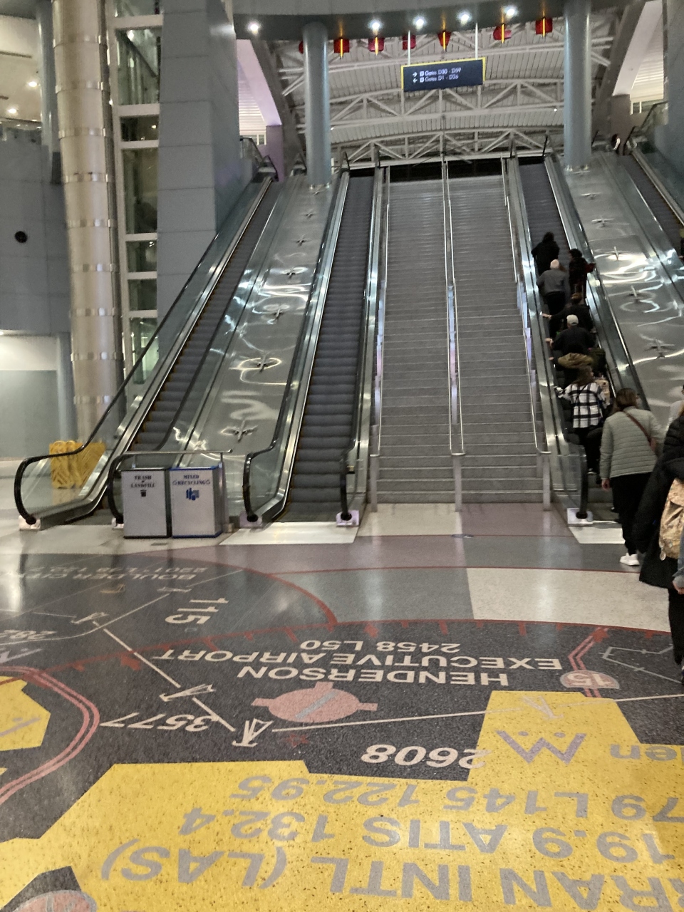 楽しいラスベガスでのホテル巡りも終わり帰国です。早朝午前3時30分ホテルを出ました。わたし達のツアーではマッカラン国際空港を午前6時出発です。こんな早朝なのに空港内は結構な観光客で賑わっていました。マッカラン国際空港に到着した時は、忙しくて写真が撮れなかったので、記念の思い出を撮りました。