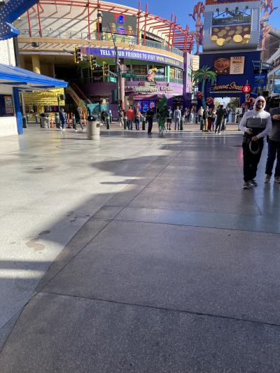 北行きのリュースに乗ってフリーモントストリートへ行ってきました。行くまでの口コミや情報では治安が悪いと言われていたので必ずリュース利用を決めていました。ノースアウトレットの帰り道にもフリーモントストリートのバス停がありましたが、フォートラベルの旅行機に帰りの南行きのバス停が見つからなくて歩いて帰ったと書いてあったので、ラスベガス通りに戻り北行きフリーモントストリート駅で降りて地球の歩き方で、帰りのバス停をしっかりと確認をしてからフリーモントストリートを楽しみました。お昼間でしたので、治安は安全でした。