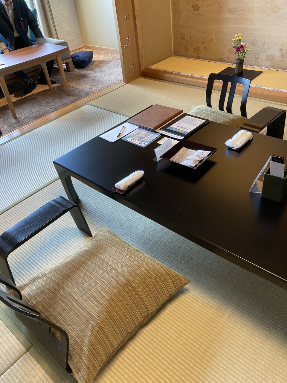 有馬グランドホテルは大体1年ぶりに宿泊してきました。今回は子供たち家族と一緒に大勢で宿泊してきました。お食事は部屋食ですが、地下一階にある大きなお食事のお部屋でみんな揃っていただきました。落ち着いたお部屋お部屋出たところは中庭になっていて、とても風情のある広い前栽で見応えがあります。