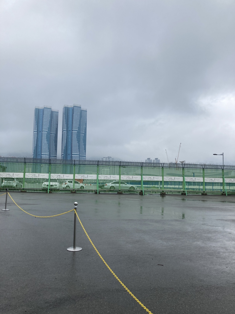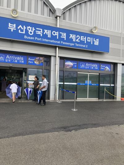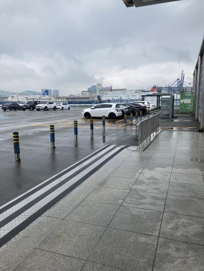 大型客船ダイヤモンドプリンセスで釜山港国際旅客ターミナルに着岸しました。本来の目的は、済州島に行く予定で観光の手配もしていましたが、台風の影響で急遽こちらの港になりました。記念に降りてみましたが、何も見るものがありませんでした。天気が大雨のせいかもしれませんがタクシーがポツンと停車しているだけでした。
