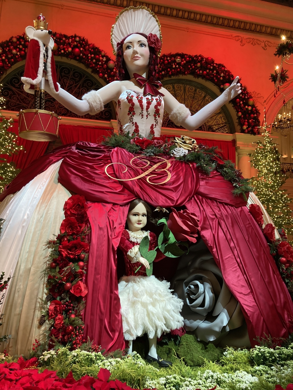 クリスマスのベラージオホテルのロビーは美しいクリスマスバージョンで不思議の国のアリスがテーマのようです。一歩ホテルの玄関口に足を踏み入れると眩しいまでの美しさでしばらくは見惚れていました。ホテルの前のラグーンでの噴水ショーも見応えがあります。