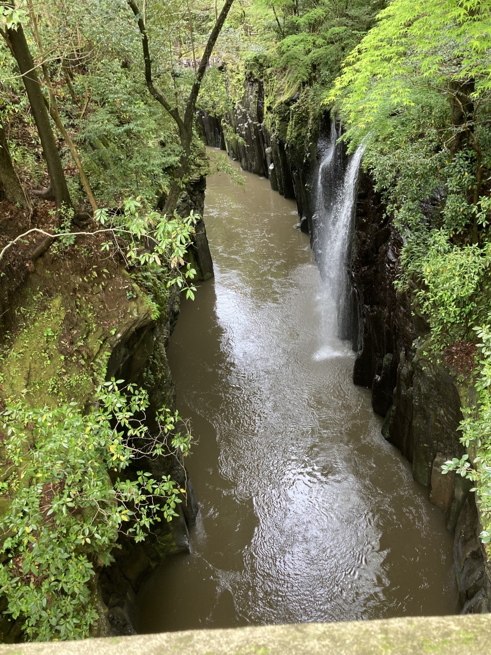 真名井の滝はマナイのタキと読みます。天孫降臨の折に、天村雲命という神が水源の種を天にある天真名井からこの地に移されてから地下水となって滝に湧出していると神話では言われています。日本の滝100選に選ばれている名爆です。滝の周辺は貸ボートで観光できますが