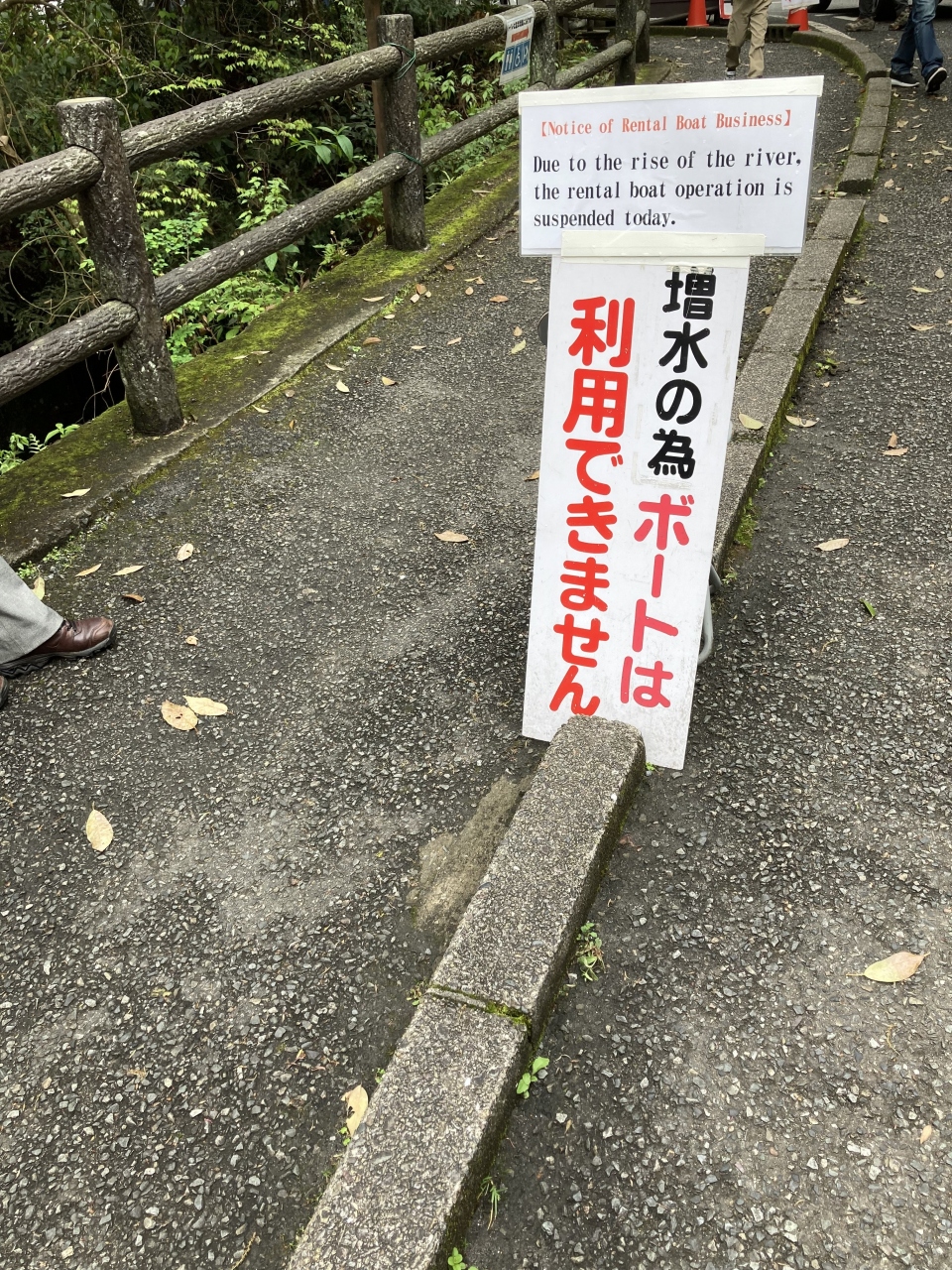 この日は午前中に降った雨のため川の水が増水してボートは停止してました。