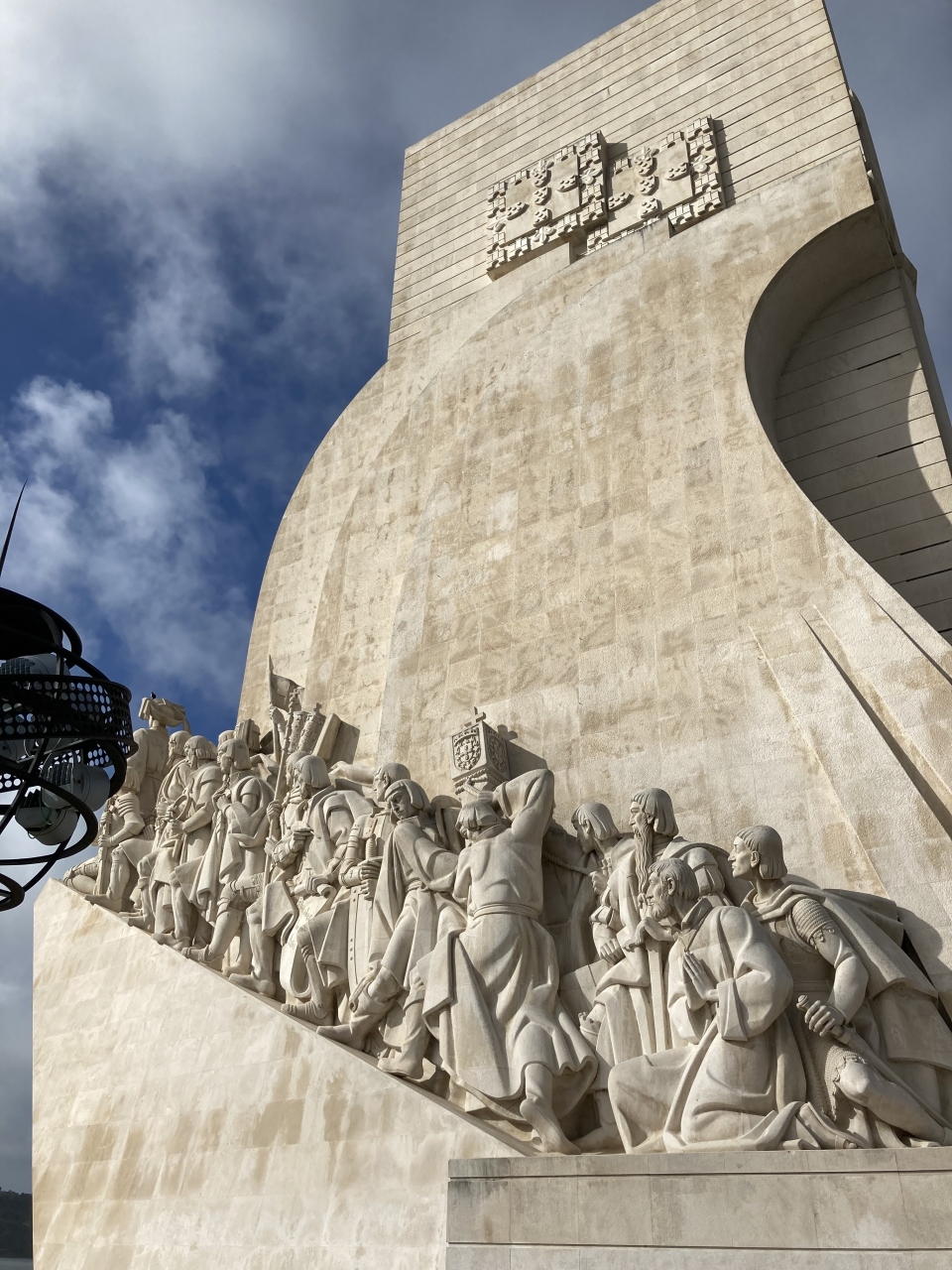 ポルトガル8日間ツアーで最後の観光コースリスボンで発見のモニュメントを観て来ました。大航海時代を切り開いた偉人たちのモニュメントです。先頭はエンリケ航海王子で3番目がヴァスコダガマで五番目は世界一周達成のマゼラン最後から2番目は日本でも有名なフランシスコザビエルたちが大海へ乗り出す勇壮なモニュメントです。