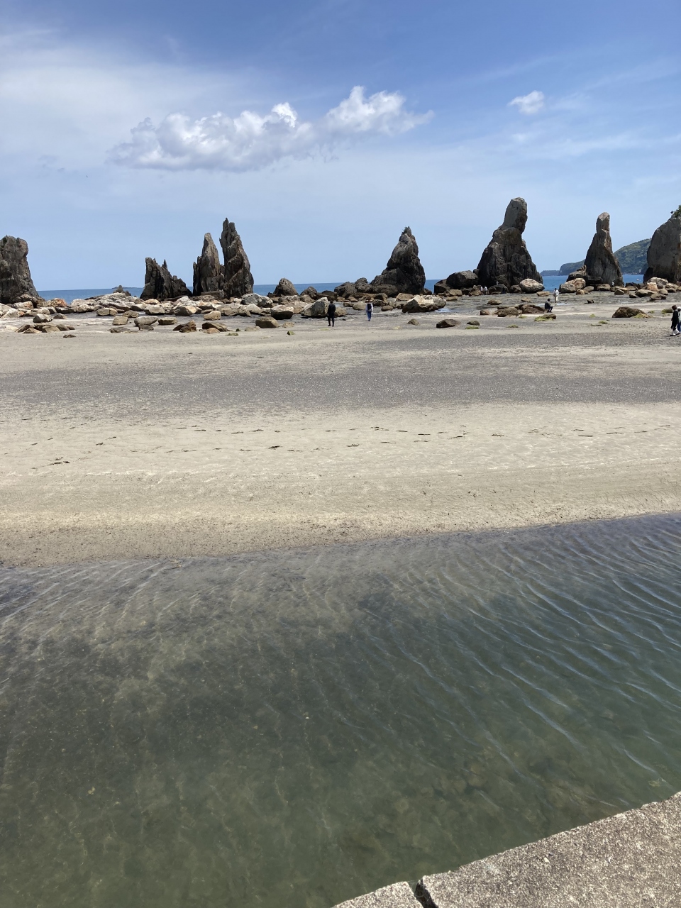 勝浦温泉から白浜温泉に向かう途中で立ち寄りました。去年もここに遊びに来ていて楽しい思い出がありましたので今回もリピートしました。海は引き潮ではるか遠くまで歩いていけます。潮溜まりには、小さなお魚がいますがすばしこくて捕まえるなんてとんでもない速さです。子供は水着を持って来ていたので潮溜まりで楽しく遊べました。駐車場は無料です。