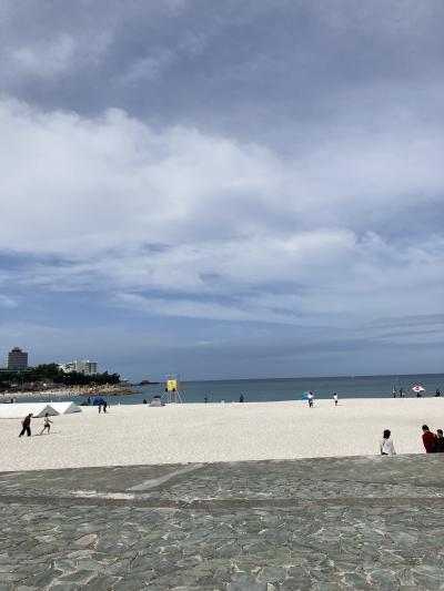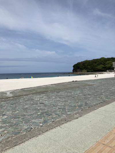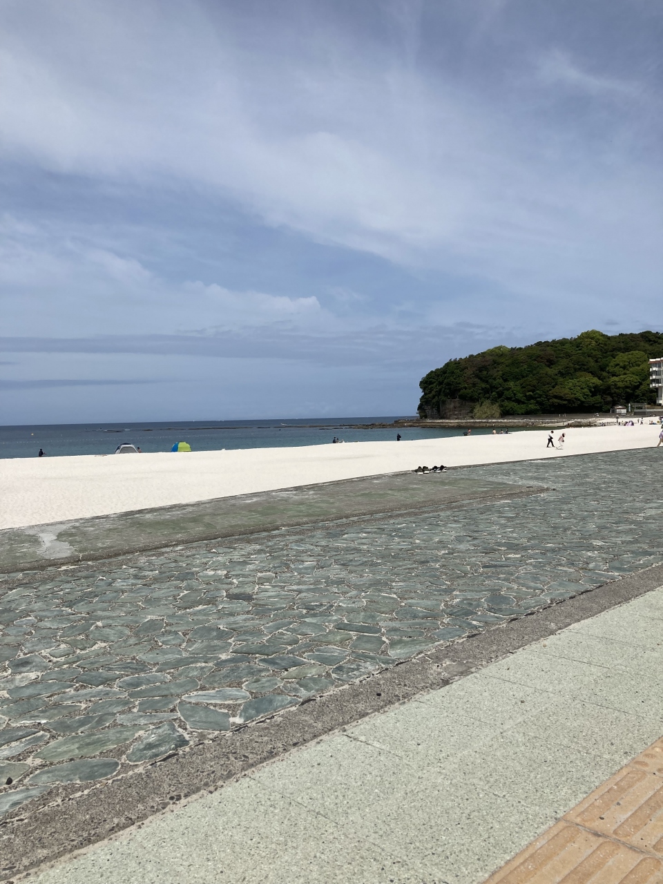 私たちが宿泊しているホテルからは、歩いて10分位のところに白良浜がありました。ゴールデンウィークの爽やかな気候なので歩くのは何の苦痛もありませんです。朝の白良浜はテレビで放映されていた混み具合とは大違いで空いていました。皆さんのんびりと海岸で遊んだり泳いだりと楽しんでいます。白良浜の名前のような美しい白い砂浜です。