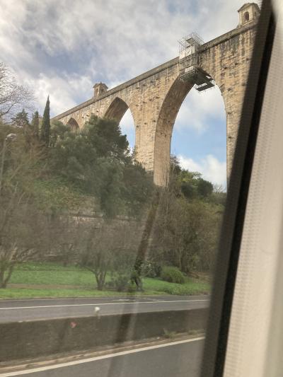 リスボン観光のバスで通過中アグアス、リブレス水道橋の真下を通過して改めて水道橋の大きさを実感しました。この水道橋はローマ時代のものではなくて、18世紀の頃に作られたようです。リスボンのメイン観光地から少し離れているところに立っています。1755年リスボン大地震にも耐えたそうです。
