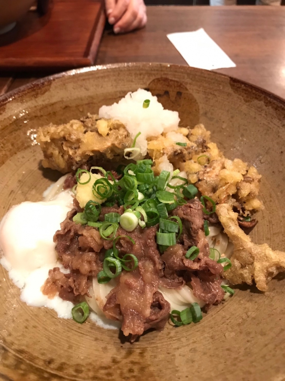大阪第3ビルの地下にあります。早めのランチで行きましたがお店の中はすでに満席でした。少し待って席に着きました。オーダーはもちろん舞茸の天ぷらとワカメ昆布入りの温かいおうどんを注文しました。運ばれて来たおうどんは見た目も美味しそうに盛り付けられていました。そしておうどんは本来の大阪のおうどんの柔らかさです。この柔らかさが美味しい味を出しています。満足しました。