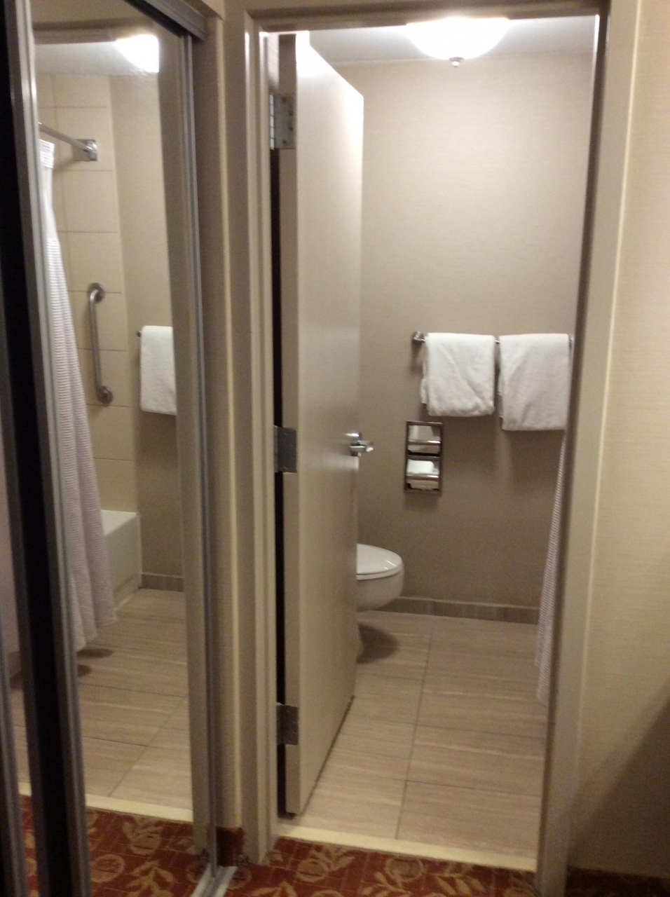 アメリカ東海岸4都市ゴールデンルートのツアーで成田からANAビジネスでニューヨークに着いた日に宿泊して翌日も宿泊で2泊しました。着いた日はお風呂の栓が閉まらなくて、困りましたが、翌日に観光に行っている間に修理をして欲しいと言って出かけました。帰って来ると、きちんと閉まる栓が付けられていました。お部屋もセンス良くスッキリとしていました。1人旅でしたのでお部屋は広々としていて、気持ちよく過ごせました。
