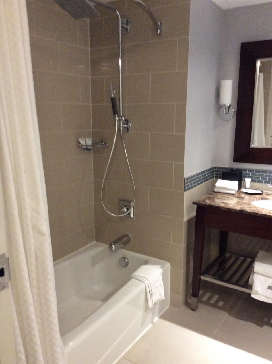 アメリカ東海岸4都市ゴールデンルートツアーで一泊しました。広々としたお部屋で、気持ちの良いベッドと、本当にぐっすりと眠れました。お部屋のテーブルにはスターバックスのコーヒーマシーンが設えてありました。バスタブも、問題無しでお湯もたっぷりと出ました。