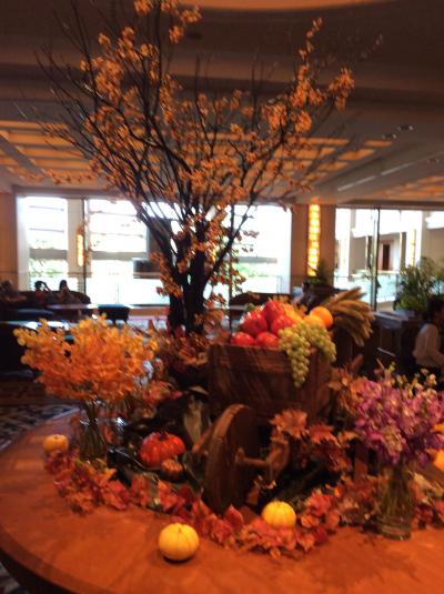 今回はご招待で大阪帝国ホテルへ行きました。ホテルのフロント前の広間はハロウィンのお花で飾られていました。この大阪帝国ホテルはメインフロントは二階になります。少し迷いますね。お食事は宴会用のホールでしました。天井のガラス飾りが素敵でした。ただ残念ながら宴会用のお料理は少しガッカリしました。