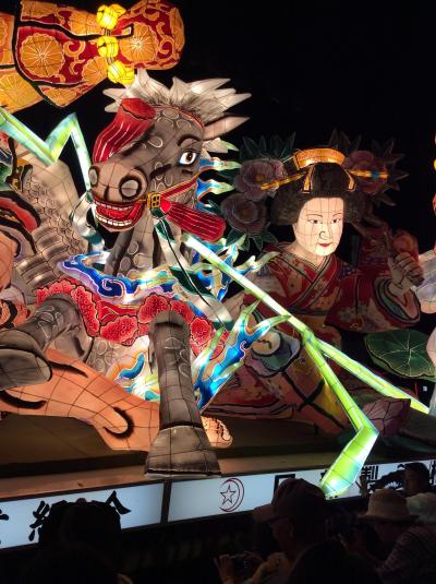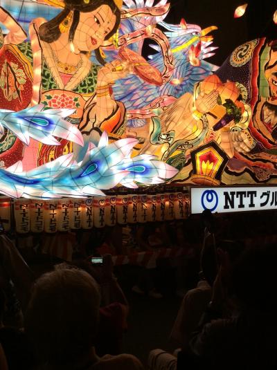 ラッセ~!ラッセ~!の掛け声でねぶたの始まり始まりです。ラッセラッセラッセら!のあいの声?観客がわからかけます。これがとても楽しいです。初めて見るねぶた祭りはダイヤモンドプリンセスのツアーで関西から来ました。2018年夏のねぶた祭りは頑張って関西と掲げて有りました。震災と豪雨に《台風はこの後でした。》襲われた熱いメッセージに感激してました。ツァーで座席も確保していただいて子供ねぶたの可愛い仕草も見てきました。