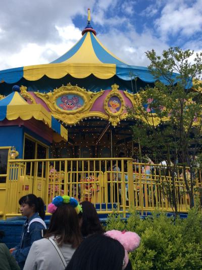 今年で2度目の訪問です。孫と一緒にですのでとにかくまず孫が乗れるものを探して歩いていました。カップケーキの乗り物は待ち時間は10分ぐらいでした。乗っているのは小さな子供達が多いですね。次はメリーゴーランドです。少し混んでいて20分ぐらいの待ち時間でした。子供用の自動車は20分ぐらいかな?