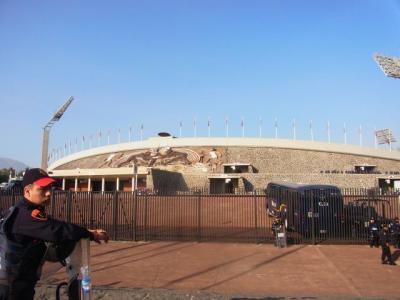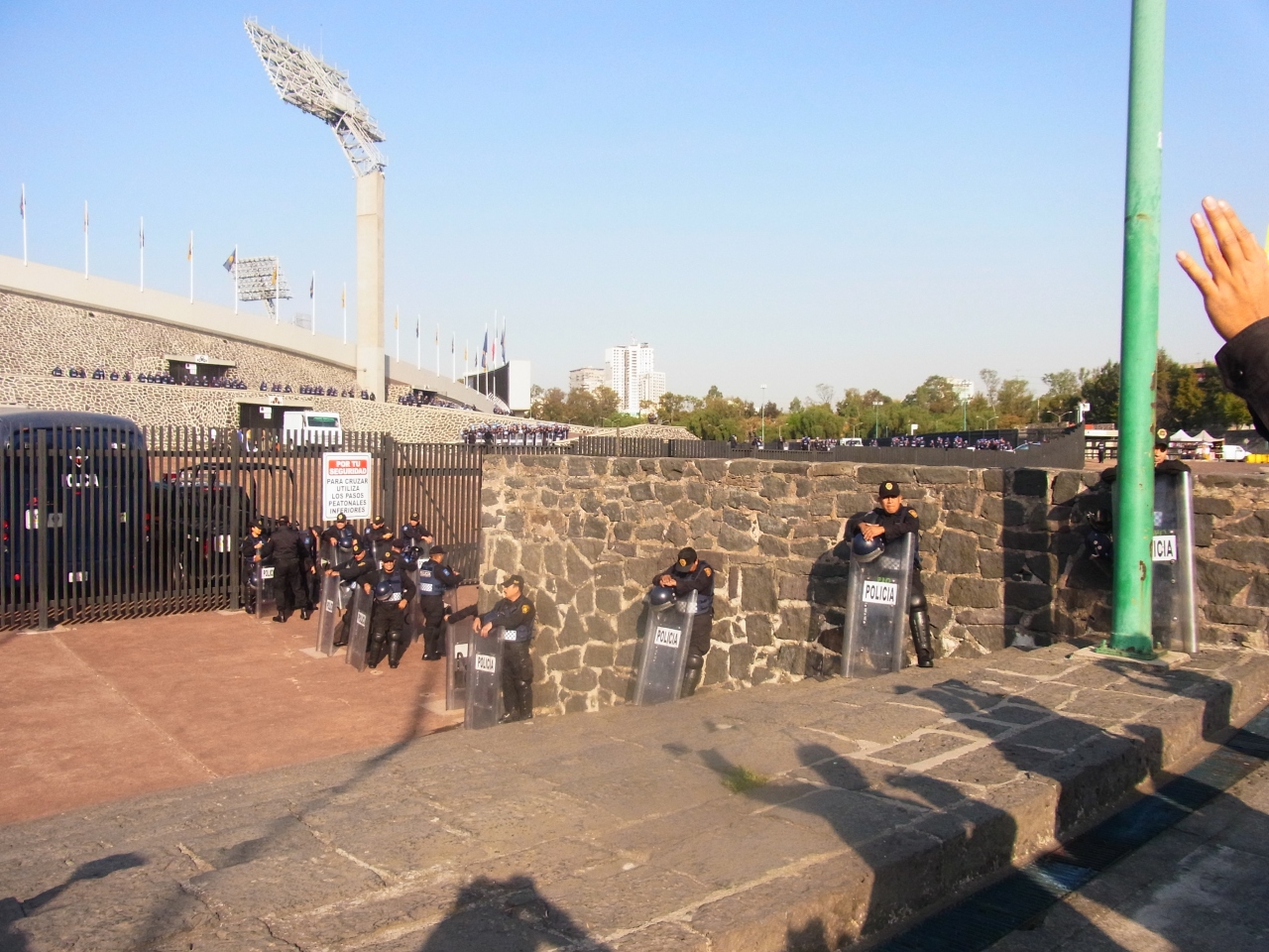 このオリンピックスタジアムはメキシコ国立自治大学の反対車線にあります。道路を挟んでお互いが見えます。今日はこのスタジアムで試合があるそうで、朝早くから、観客が来る前からも、物々しい警備が敷かれていました。そこを通り抜けるのが、ちょっとドキドキでしたが、警備の人たちは優しかったです。
